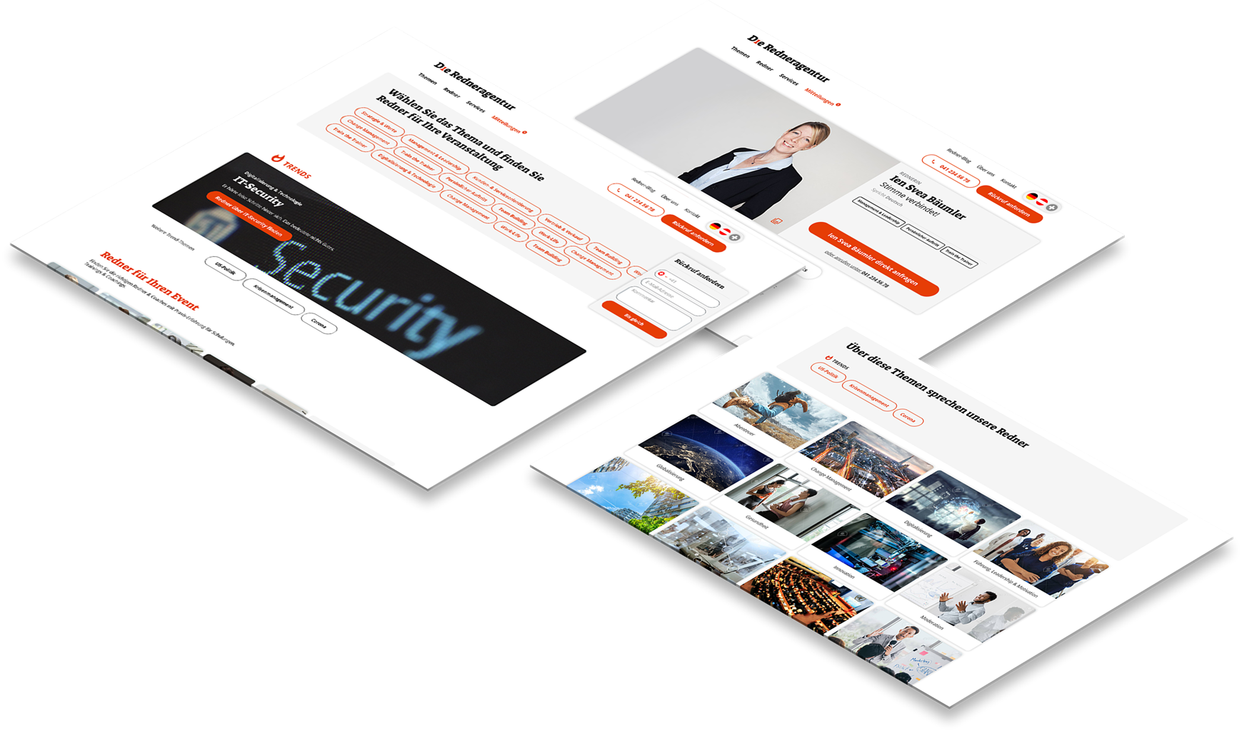 Konzept, Design und Realisierung Website sowie Entwicklung Logo für die Rednervermittlungsagentur.